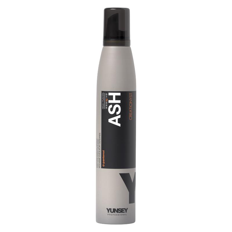 Espuma color ceniza que proporciona cuerpo y volumen al cabello, fijándolo suavemente.